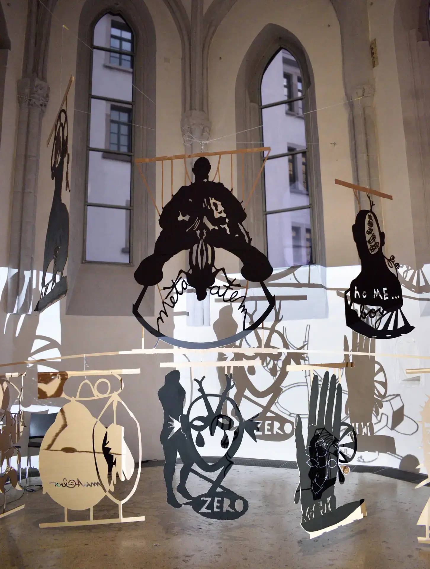 In der Ausstellung gezeigt werden Zeichnungen, Wachsmalereien, Papierschnitte, Objekte, Malereien, Videofilme und Trickfilme. Der in Ludwigsburg lebende Maler und Graphiker Jörg Mandernach arbeitete schon immer mit unterschiedlichen Medien und über das Einzelbild hinaus. Dazu kommen Installationen und Wand-Raum-Zeichnungen, die sich zum Teil über Wände, Böden und Decken ausbreiten. Im gotischen Chorraum, der Bestandteil der Galerie ist, ist ein großes Mobile installiert.