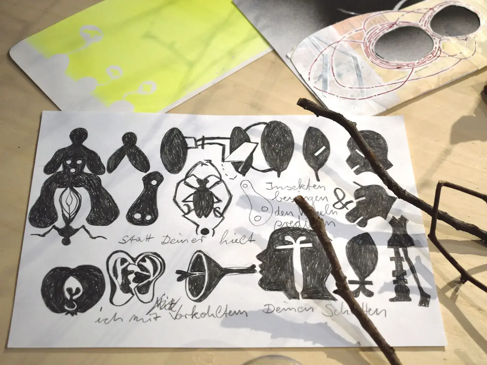 Start » Ausstellungsansichten/Raumzeichnungen/Installationen » Dein Nachtschattentanz ist mein Morgenmurmeln